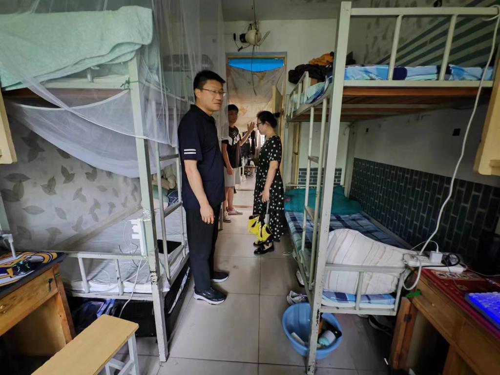 为进一步提高学生的生活质量,督促学生养成良好的卫生和生活习惯,创建安全、整洁、文明的学习和生活环境,5月17日,我院党委副书记王坤及辅导员刘洪超对男、女生宿舍进行了安全、卫生检查。检查的内容除了宿舍整体卫生状况,个人卫生情况之外,还包括电源使用情况等。就检查结果来看,大部分同学能够自觉维护干净整洁的宿舍环境,并积极响应学校号召,做到人走电断,消除可能引发宿舍危险的各种隐患,同时对宿舍值日表的张贴和执行进行检查。但也有个别宿舍的卫生间地面较为脏乱,床铺不整洁,桌面上的物品摆放杂乱,地面拖鞋摆放混乱。