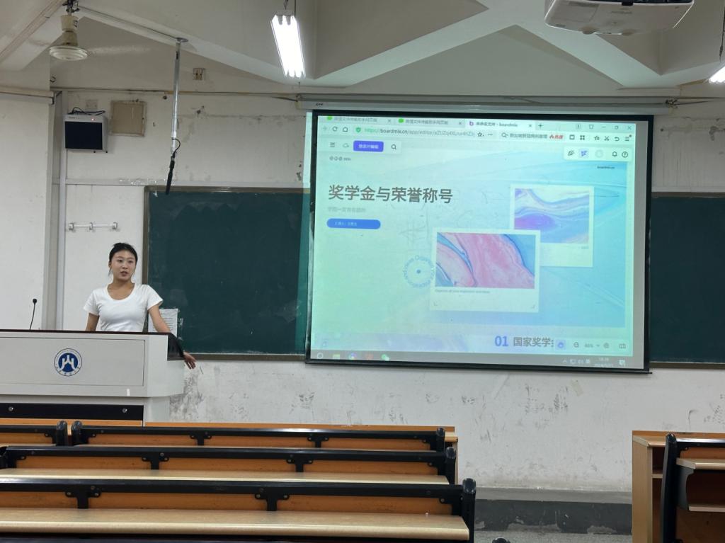 院学生会主席、荣获省级优秀学生干部的王凯立,向同学们详细分享了奖学金和荣誉称号的获得途径,并结合自身经历,强调了学习成绩和综合测评成绩的重要性。