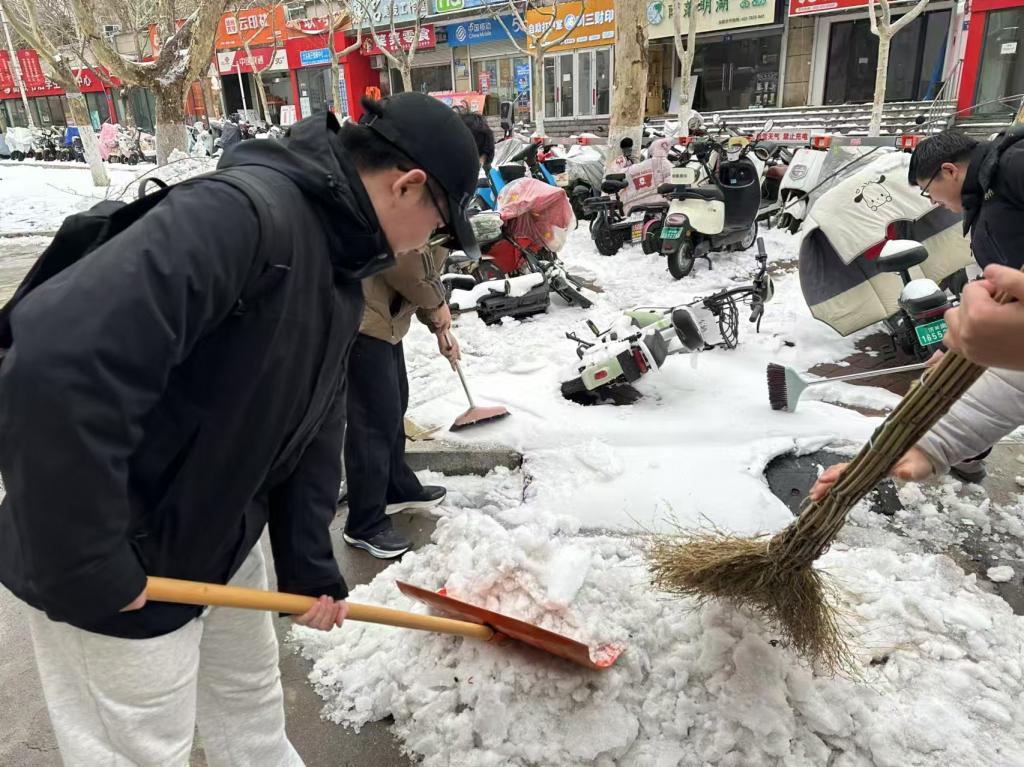 受强冷空气影响,3月2日,济南市遭遇罕见暴雪侵袭,极端天气导致多地积雪严重,道路通行受阻。为保障校园安全畅通,体育学院发起“破冰护航”校园扫雪行动,学生党员、入党积极分子和志愿者积极参与,重点对体育馆周边道路及宿舍楼入口等关键区域开展积雪清理工作,用实际行动为师生开辟安全通道,展现了体院学子的担当,同时也传承和践行了雷锋精神。