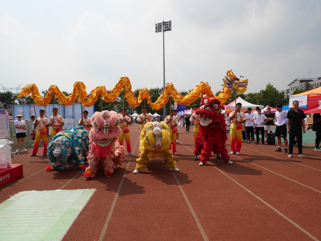 为了使新生们感受到体育学院的温暖和活力,学院特别设计了签名墙和“我爱体育”立体字,让新生们在签名留念的同时,记录下自己独特的大学记忆。此外,学院还精心设计了跳远抽奖和抽盲盒等趣味游戏,准备了丰厚的开学纪念礼,既展现了体育学院的体育特色,又增添了迎新活动的趣味性和互动性。学院的特色社团——传统体育文化社团,通过精彩的表演,向新生们表达了热烈的欢迎,让他们感受到了龙狮的神韵和迎新现场的喜庆气氛,增强了新生对学院的认同感、归属感和自豪感。同时,学院还设置了宣传展板,详细介绍了学院的基本情况、特色亮点以及近三届考研考公就业的光荣榜,帮助新生们更好地了解学院,并规划自己的未来发展。
